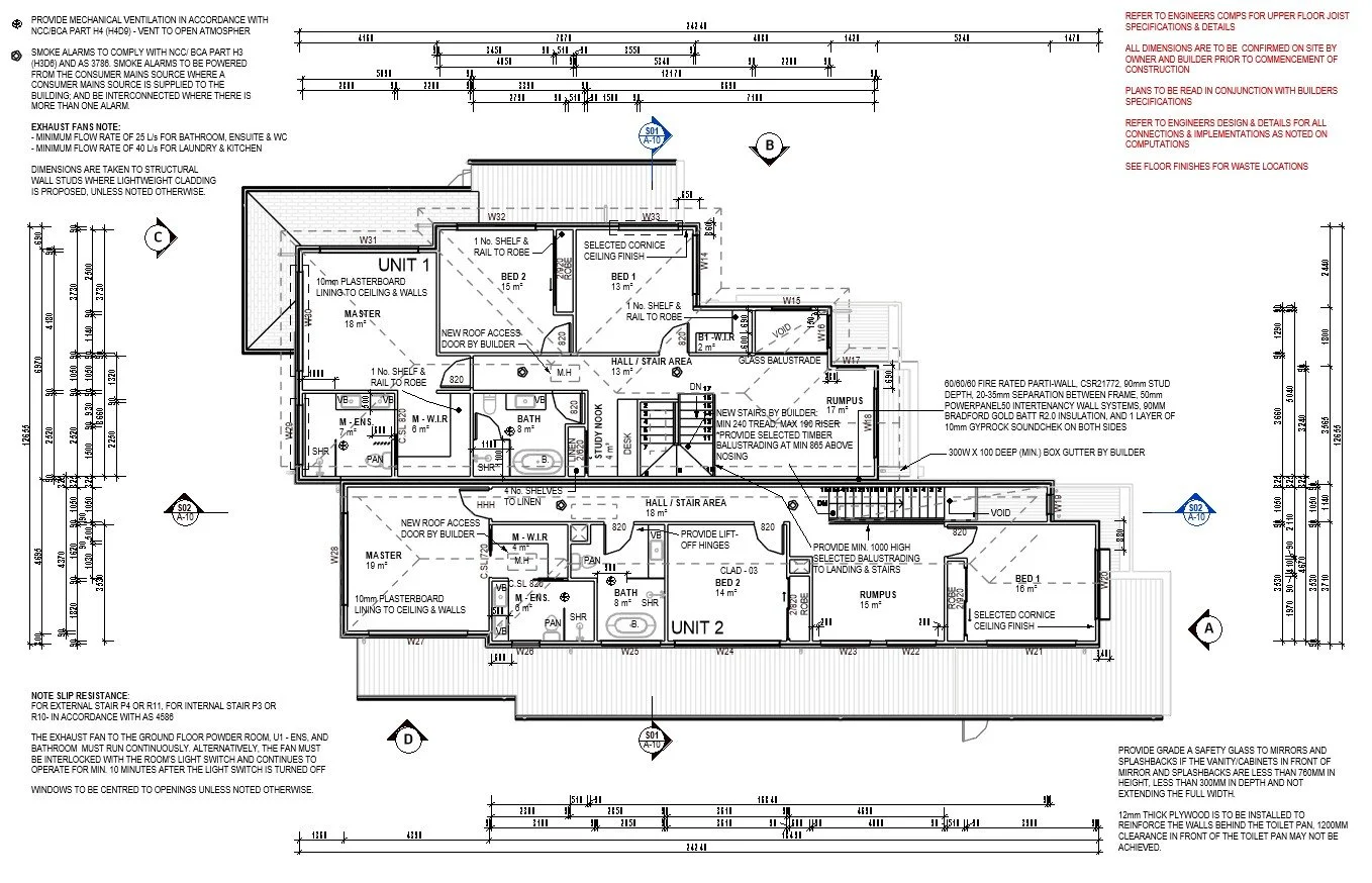 Detailed building plans that are ready for builder pricing, permit submission and construction — including all technical annotations and coordination notes.